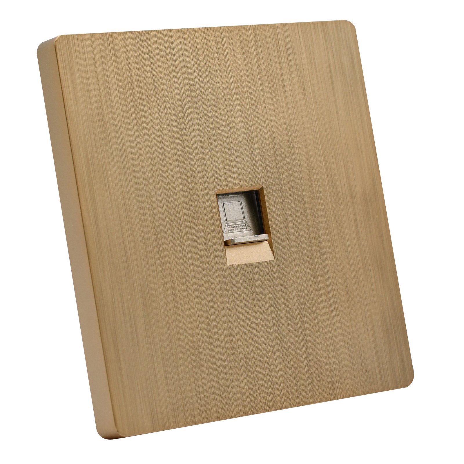 فيش كمبيوتر بلون ذهبي فاخر، مصمم لتوفير نقطة اتصال شبكي ثابتة لأجهزة الكمبيوتر والراوترات، مع مظهر راقٍ يضفي لمسة من الفخامة على المساحات الداخلية. يتميز بجودة تصنيع عالية وصناعة سعودية تضمن الاستخدام طويل الأمد، ويُعد خيارًا مثاليًا للمنازل والمكاتب والفنادق.