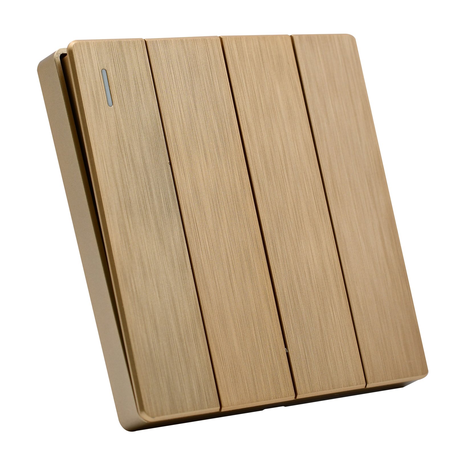 مفتاح رباعي ذهبي أنيق، صناعة سعودية بضمان 25 سنة، للتحكم بأربع دوائر كهربائية بتصميم فاخر.