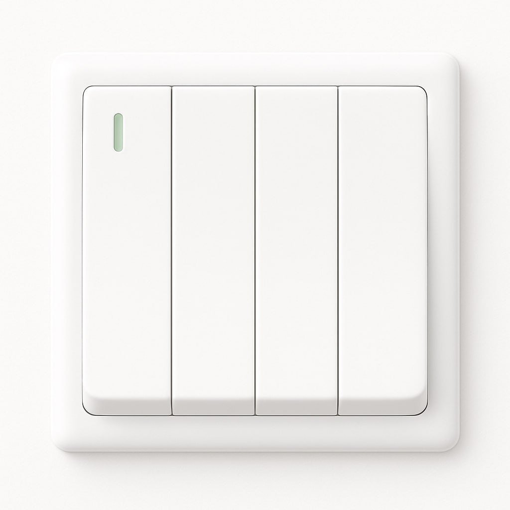 مفتاح كهربائي رباعي بمؤشر ضوئي من مجموعة M3، تصميم أنيق وآمن للتحكم في أربع دوائر كهربائية مستقلة.